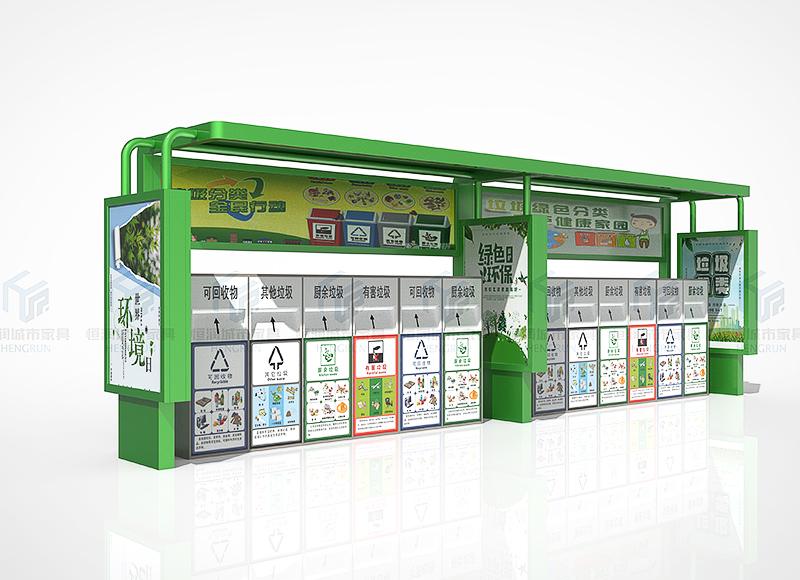 垃圾分类亭采用镀锌钢结构,表面采用氟碳金属烤漆工艺。具有外形美观、表面耐腐蚀、抗风性能强、使用寿命长等优点。产品的样式、尺寸、颜色、材质、配置等均可按需定制。