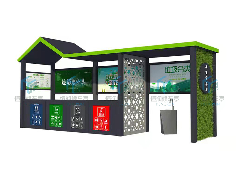 垃圾分类亭采用镀锌钢结构,表面采用氟碳金属烤漆工艺。具有外形美观、表面耐腐蚀、抗风性能强、使用寿命长等优点。产品的样式、尺寸、颜色、材质、配置等均可按需定制。