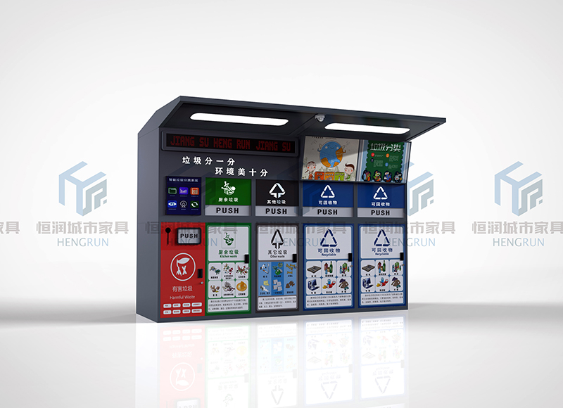 可选智能配置:二维码、IC刷卡投递、满桶警示、灯箱路牌、PC端、IOS、安卓管理系统、彩色宣传屏(尺寸可以定制)、GPS定位、重量检测、换气风扇";