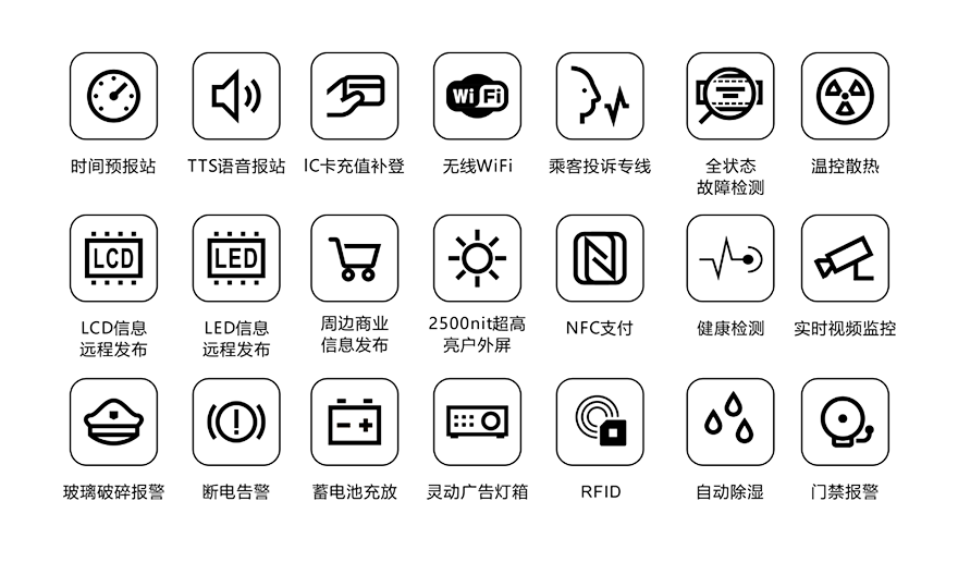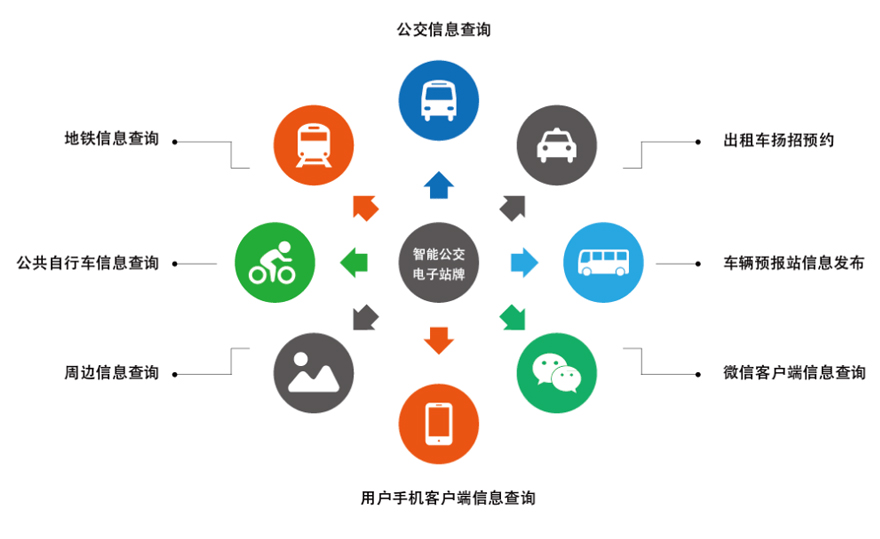 恒润智能化公交电子站牌集成了公交信息查询、车辆预报站信息发布、出租车扬招预约、微信客户端信息查询、手机移动端管理管家、周边数字化信息发布、公共自行车信息查询、地铁信息查询等智能化功能,智能化程度高,技术先进,运行稳定,兼容性可扩展强,功能丰富,多项独有的出行解决方案一直引领智慧出行行业发展方向。
